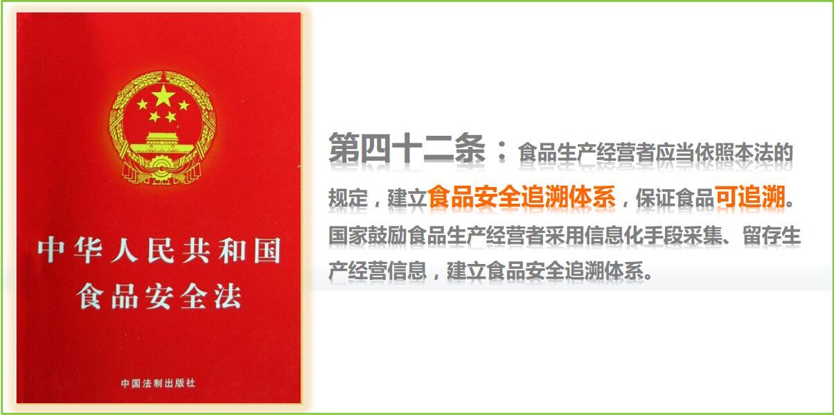 食品企業(yè)建立追溯體系,是國家《食品安全法》中第四十二條所要求,企業(yè)需要建立可追溯制度,利用信息化手段建立可追溯體系,部分區(qū)域甚至出臺地方法規(guī)要求企業(yè)必須加入追溯體系,否則將禁止產(chǎn)品流通。
