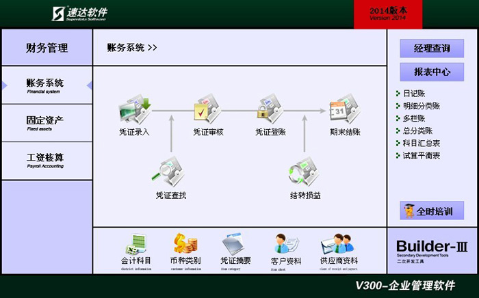 《速達V300-商業(yè)版》集企業(yè)管理、財務(wù)管理、分銷管理(BDM)、項目管理、工作日志、客戶關(guān)系管理于一體,構(gòu)建完整的企業(yè)管理體系,有效的將企業(yè)內(nèi)部管理、駐外機構(gòu)管理、信息管理進行整合,科學(xué)的融入Builder-III二次研發(fā)工具,真正實現(xiàn)了企業(yè)管理平臺化,應(yīng)用網(wǎng)絡(luò)化,工作“云”動化。與新時代、新科技、新文化高度吻合,全面提升企業(yè)管理能力。