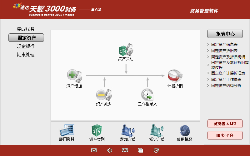 《天耀財務-Bas》完全符合國家現(xiàn)行會計制度標準。功能強大、易學易用。產(chǎn)品集財務管理、現(xiàn)金銀行、固定資產(chǎn)管理、自定義報表于一體。特別適合中小企業(yè)使用。