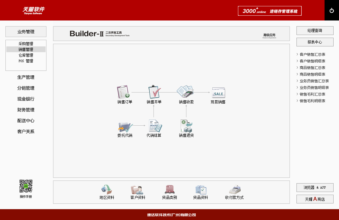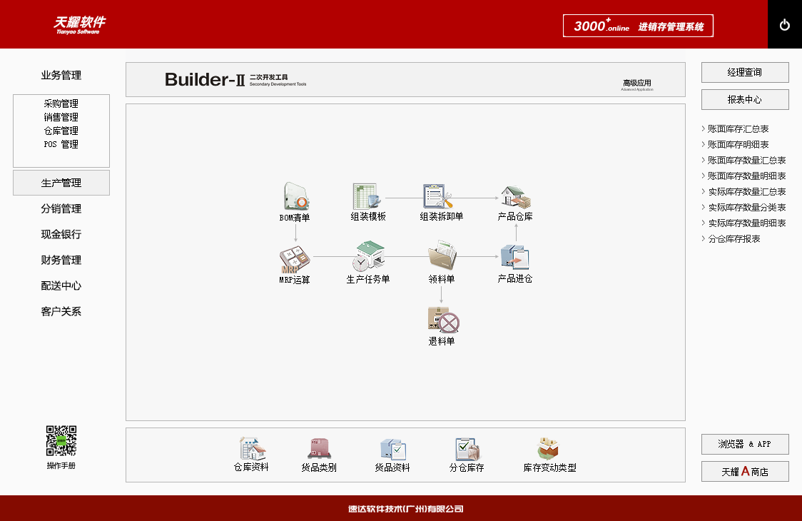 《天耀3000+.online PRO》集進(jìn)銷存、POS、財(cái)務(wù)、生產(chǎn)、CRM為一體的中小企業(yè)管理軟件。軟件支持云部署和桌面服務(wù)器部署及APP部署,并科學(xué)地融入Builder-II二次研發(fā)工具,滿足企業(yè)管理的個(gè)性化需求,大大提升了應(yīng)用效率和安全性。 軟件支持局域網(wǎng)/互聯(lián)網(wǎng)多用戶應(yīng)用,實(shí)現(xiàn)異地多機(jī)構(gòu)、多店面、多倉(cāng)庫(kù)等遠(yuǎn)程應(yīng)用,支持APP移動(dòng)端應(yīng)用,數(shù)據(jù)實(shí)時(shí)同步,安全、穩(wěn)定、高效、易維護(hù),特別適合中小企業(yè)使用。