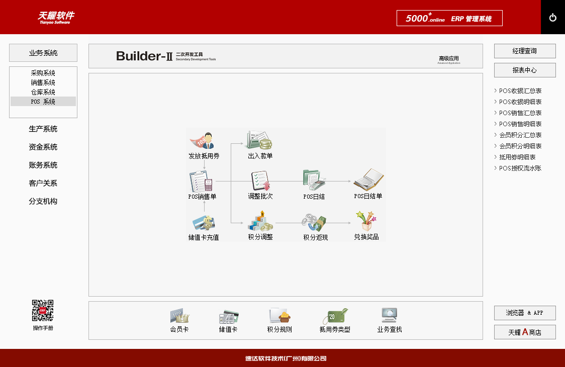 《天耀5000+.online PRO》作為ERP管理軟件,特別適合中型企業(yè)使用。軟件支持云部署和桌面服務(wù)器部署及APP部署,并科學(xué)地融入Builder-II二次研發(fā)工具,滿足企業(yè)管理的個(gè)性化需求,大大提升了應(yīng)用效率和安全性。軟件全面實(shí)現(xiàn)供應(yīng)鏈業(yè)務(wù)管理、生產(chǎn)管理、資金管理、財(cái)務(wù) 管理、客戶關(guān)系管理、異地分銷、遠(yuǎn)程配送、多機(jī)構(gòu)集團(tuán)化管理。支持局域網(wǎng)/互聯(lián)網(wǎng)多用戶應(yīng)用,實(shí)現(xiàn)異地多機(jī)構(gòu)、 多店面、多倉(cāng)庫(kù)等遠(yuǎn)程應(yīng)用,同時(shí)支持APP移動(dòng)終端應(yīng)用,數(shù)據(jù)實(shí)時(shí)同步,安全、穩(wěn)定、高效。