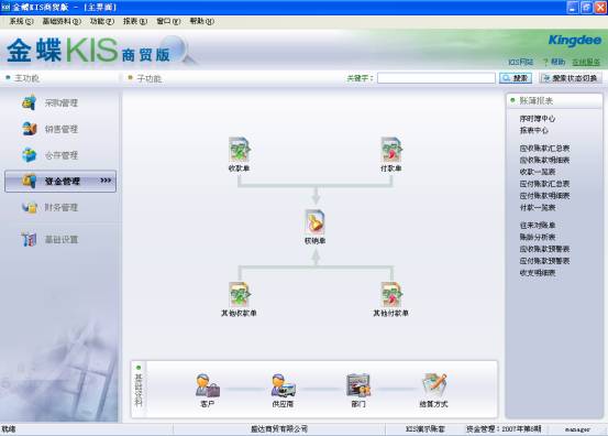 通過(guò)收款單、付款單、其他收款單、其他付款單、核銷單五張單據(jù),處理同供應(yīng)商、客戶的主營(yíng)業(yè)務(wù)以及非主營(yíng)業(yè)務(wù)的往來(lái)結(jié)算,綜合反映企業(yè)全盤(pán)收支情況