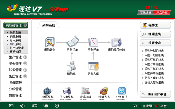 應(yīng)收分析報表、應(yīng)付分析報表、配送報表、開票管理報表、POS銷售報表、售后報表、客戶關(guān)系報表。
